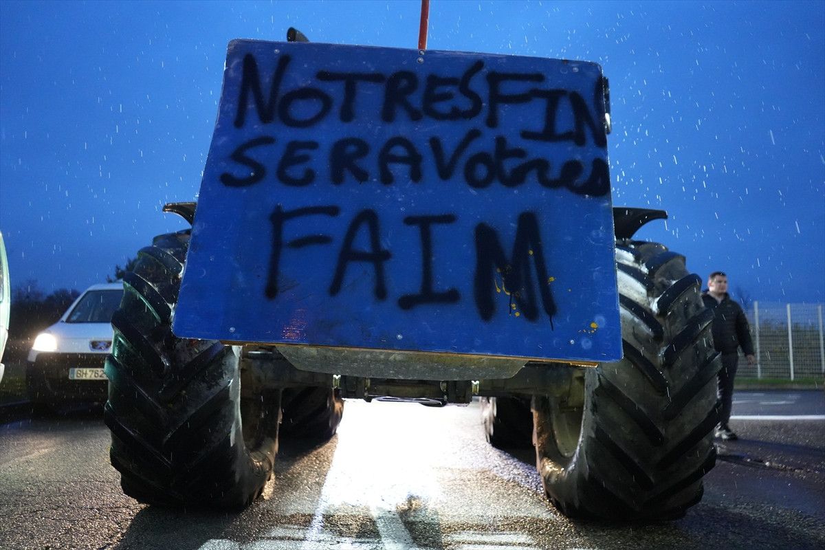 Fransa’nın Saone-et-Loire vilayetine bağlı Macon kentinde çiftçiler, ülke genelinde süren tarım protestoları kapsamında ana ulaşım güzergâhlarında eylem yaptı. Göstericiler, traktörlerle ve çeşitli araçlarla ulusal yolu kapatarak çift yönlü trafiği durdurdu.