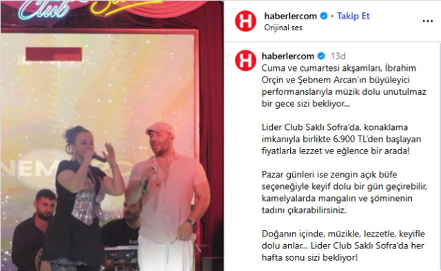 Türk müzik sahnesinin sevilen isimleri İbrahim Orçin ve Şebnem Arcan, bu sezon Lider Club Sahne’de dinleyicilerle buluşuyor. Her cuma ve cumartesi akşamı gerçekleşen performanslarda iki sanatçı, zengin repertuvarlarıyla misafirlere keyif dolu saatler yaşatıyor.