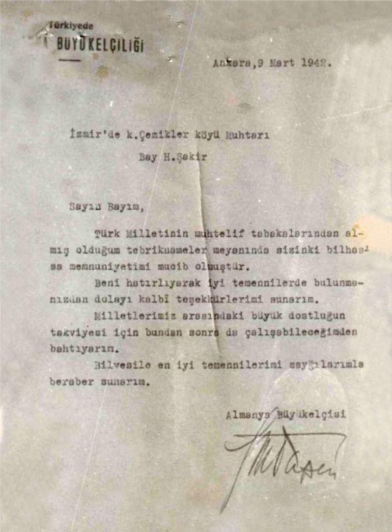 Benzer şekilde, Von Papen’e suikast girişiminde bulunulmasının ardından Şemikler Köyü Muhtarı Şakir tarafından gönderilen tebrik mektubu da açıklığa kavuştu. Şakir’in Von Papen’e duyduğu sempati ve olaydan sağ kurtulmasından duyduğu memnuniyetin yer aldığı mektuba, Von Papen’in olumlu yanıt verdiği belgelere yansıdı.
