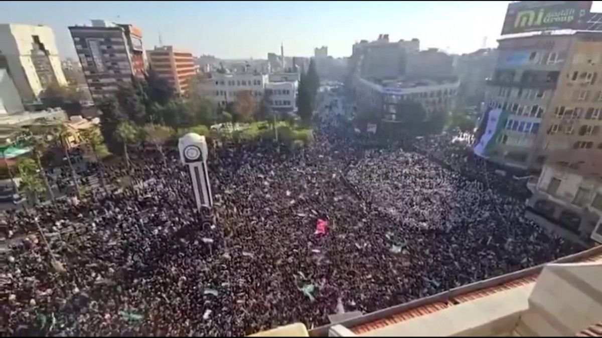 Suriye halkı, Devlet Başkanı Ahmed Şara’nın “Suriye’nin Kurtuluşu” operasyonunun başlamasının yıl dönümü nedeniyle Cuma namazı sonrasında ulusal birlik kutlamaları düzenlenmesi çağrısında bulunmasının ardından meydanlara indi.
