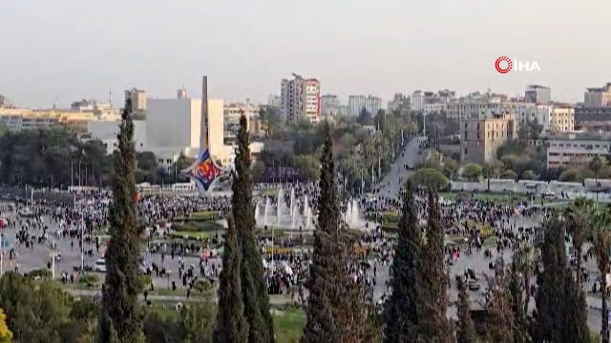 Günün erken saatlerinden itibaren başta başkent Şam olmak üzere Humus, Lazkiye ve diğer birçok şehirde meydanlara akın etmeye başlayan kalabalıklar, bayraklar eşliğinde Suriye’nin birliğini ve kurtuluşunun yıl dönümünü kutlayan sloganlar attı.
